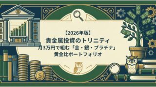 貴金属投資 【2026年版】貴金属投資のトリニティ|月3万円で組む「金・銀・プラチナ」黄金比ポートフォリオ 総資産1.2億円投資家が実践する貴金属ポートフォリオ。楽天証券とSBI証券(Oliveゴールド)を併用し、金・銀・プラチナを黄金比率7:2:1で積立。銀の手数料をポイントで相殺するテクニックや、具体的な積立配分を公開。 2026.02.19 貴金属投資