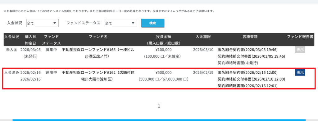 新NISAの普及に伴い、投資の選択肢が多様化する中で、私がポートフォリオの安定性を補完する一助として選んだのが「AGクラウドファンディング」です。同サービスは1円から投資可能という手軽さが魅力ですが、今回は全体の資産バランスを考慮し、2月に募集された『不動産担保ローンファンド#162(店舗付住宅@大阪市淀川区)』へ50万円を投じました。