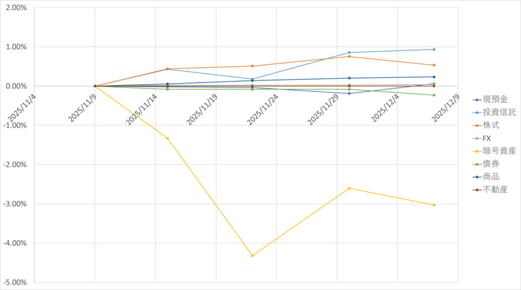 - 投資信託:+10万円程度。ほぼ現状維持ですね。変化が多い中でしたので、まずまずの成績だと思います。