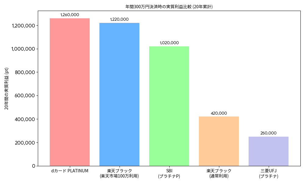 【年間300万円決済編】ゴールドを卒業せよ。プラチナ・ブラックへの昇格ラインと「実質利益」の逆転劇