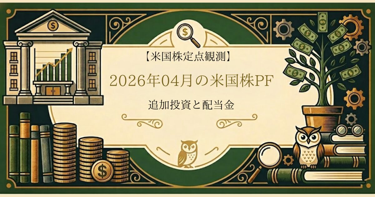 そんな相場環境の中、3月末から4月初めにかけてPG・KO・BMY・ITUBを追加購入しました(詳しくは前回記事をご覧ください)。今回は新シリーズ「米国株定点観測」の第1回として、〈買った後どうなったか〉を事実ベースで報告します。評価額の変化、4月に届いた配当金の記録、そして前回予告した次回検討リストの答え合わせまで、一通りまとめていきます。